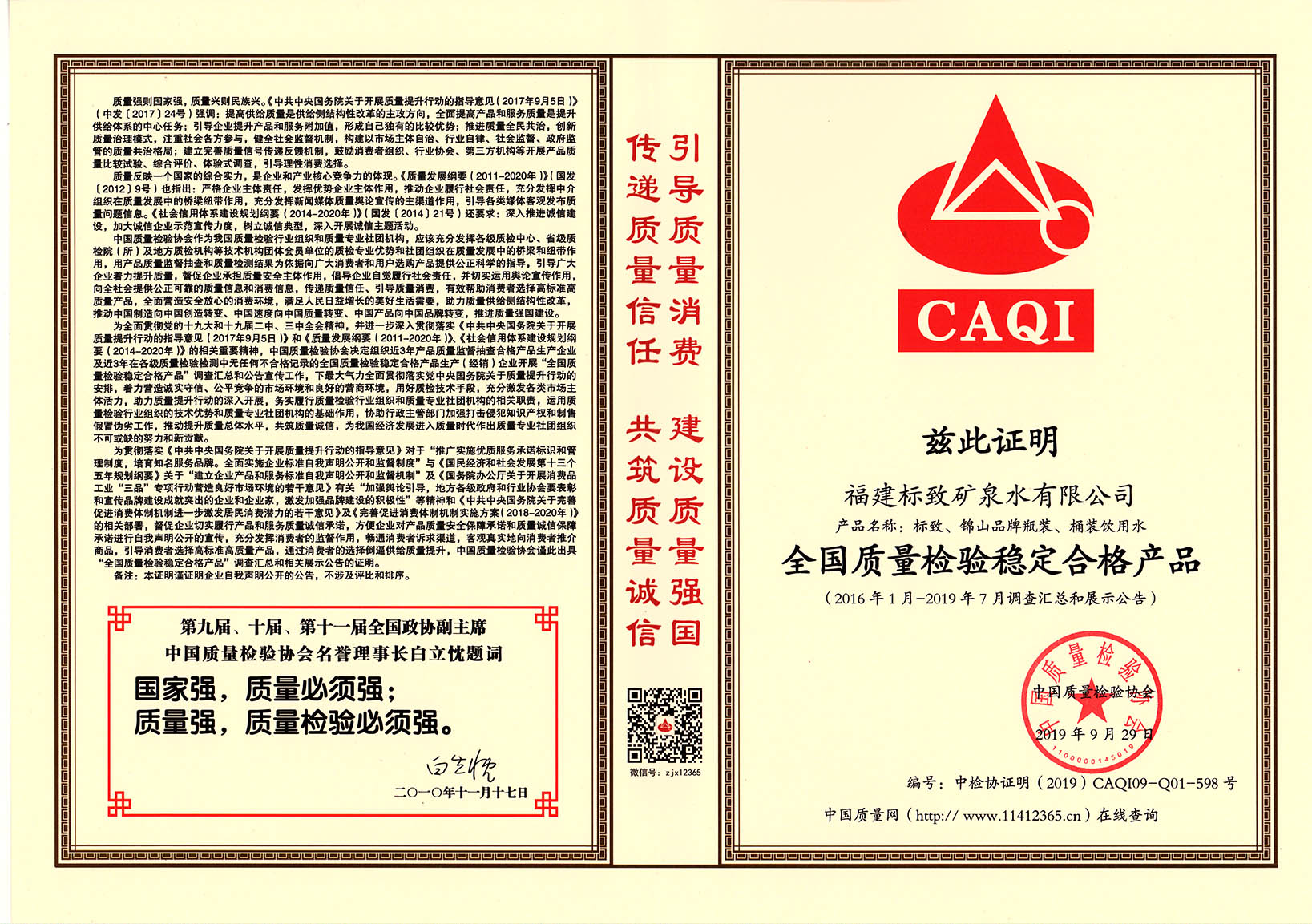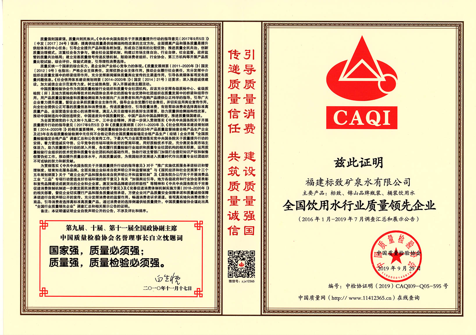 • 2020-03-252019年9月,標(biāo)致公司榮獲“全國(guó)質(zhì)量檢驗(yàn)先進(jìn)企業(yè)”稱號(hào)