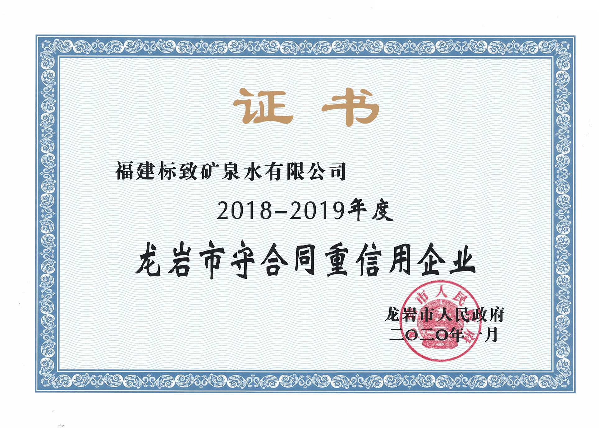 • 2020-06-162020年1月,標(biāo)致公司榮獲“2018-2019年龍巖市守合同重信用企業(yè)”稱號(hào)