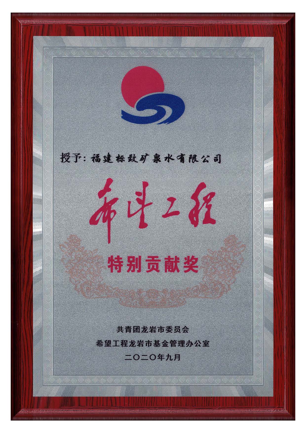 • 2020-09-182020年9月,福建標(biāo)致礦泉水有限公司被授予“希望工程特別貢獻(xiàn)獎(jiǎng)”!