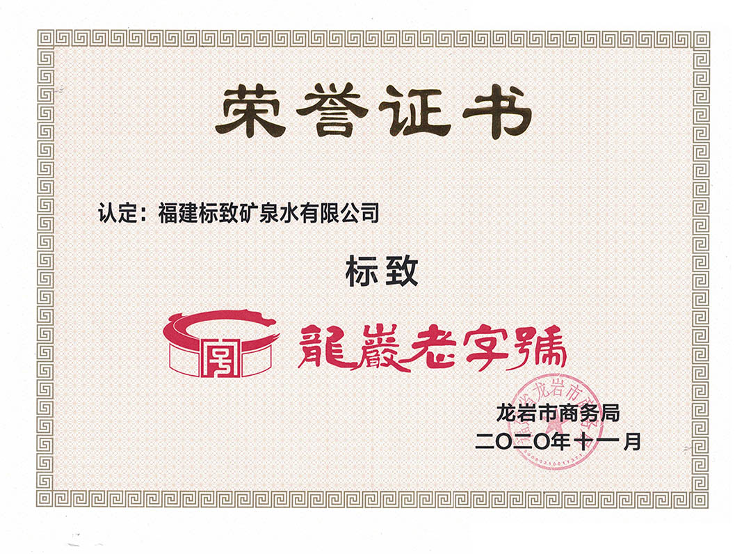 • 2020-11-182020年11月,“標(biāo)致”被認(rèn)定為“龍巖老字號(hào)”稱號(hào)